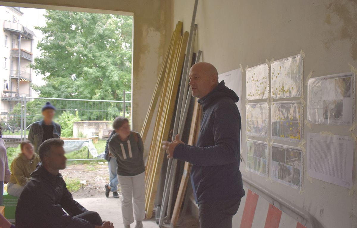 Im Juli 2025 fand ein erster Workshop statt, bei dem Wünsche und Ideen für den späteren Nutzer des Gartens gesammelt wurden. Die Teilnehmenden setzten sich aus Nachbar:innen, Vertreter:innen der Volkssolidarität und der angrenzenden Kindertageseinrichtung "Die kleinen Entdecker" zusammen.