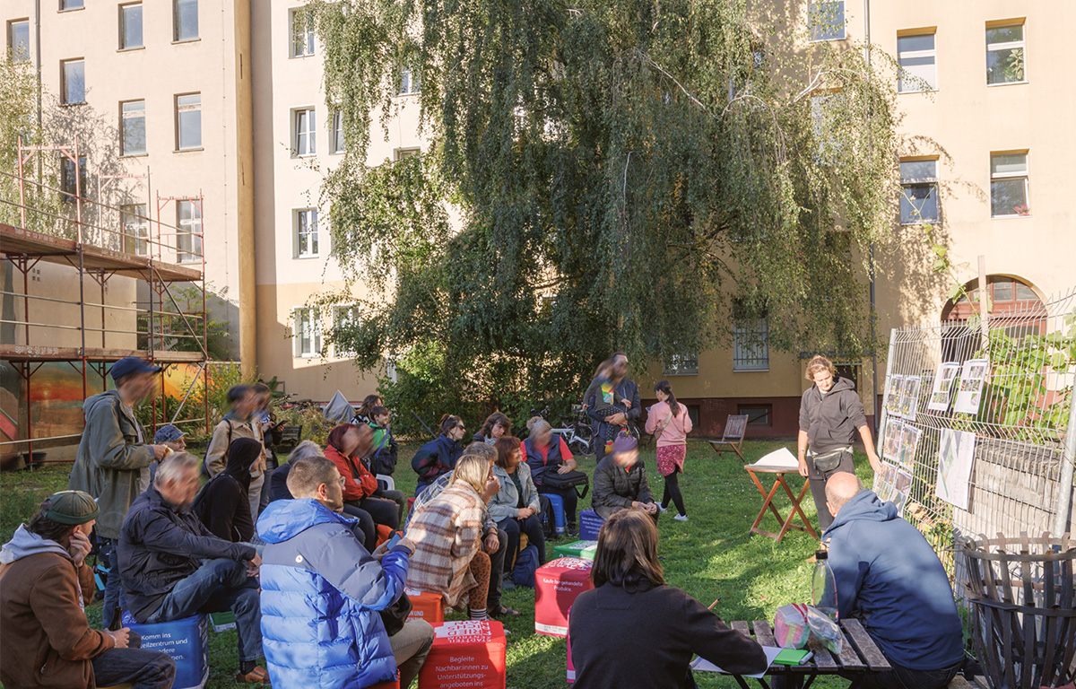 Im Rahmen der Neugestaltung des Außenbereichs des Stadtteil- und Seniorenzentrums Friede in Berlin-Friedrichshain-Kreuzberg führten wir eine zweistufige Beteiligung durch. In Kooperation mit dem Bezirksamt und andere Beteiligte wurde eine Diskussion über die Zukunft des Gemeinschaftsgartens geführt.