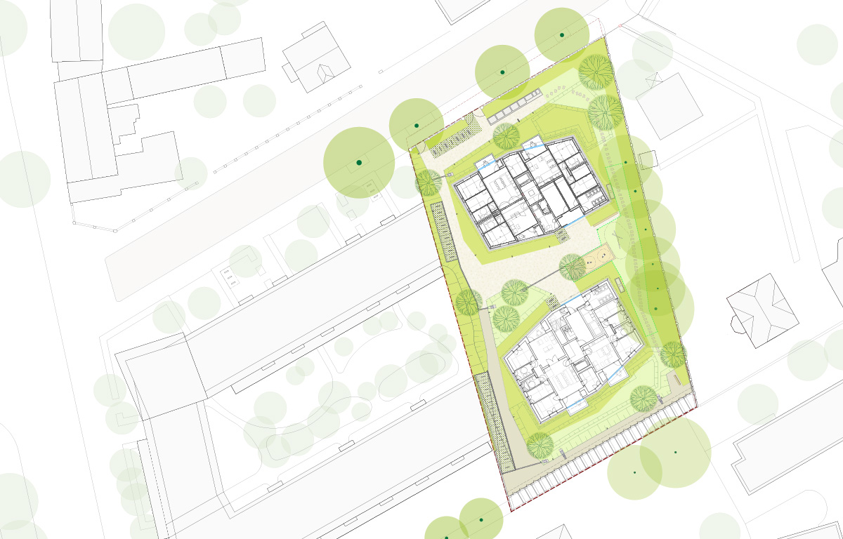 Zur Regenwasserbewirtschaftung werden Mulden mit Retentionsfunktion angelegt, die auch als temporäre Aufenthaltsflächen nutzbar sind. So entsteht ein robustes, grünes Wohnumfeld mit hoher Aufenthaltsqualität – für alle Generationen.