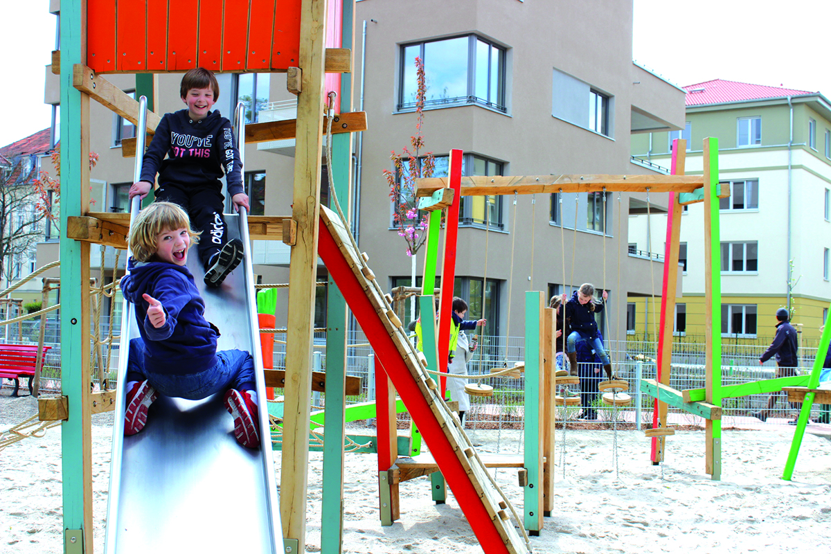 Mit der Neugestaltung des Kinderspielplatzes in der Curtiusstraße sollte ein Ort geschaffen werden, der sowohl für die jüngeren als auch für die älteren Kinder der Nachbarschaft ein vielfältiges und abwechslungsreiches Spielangebot bietet.