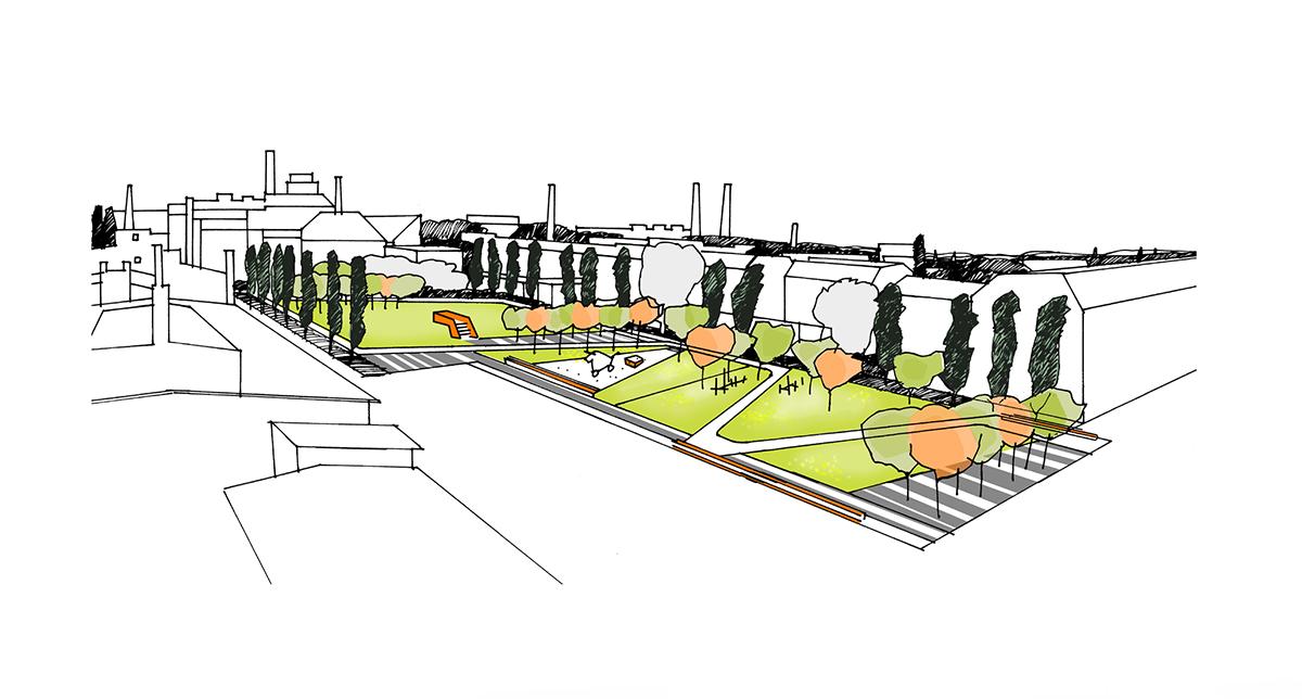 Unser Entwurf geht vom Begriff der "Bürgerwiese" aus. Kein geringerer als Peter Joseph Lenné gestaltete um 1850 in Dresden die dortige städtische Bürgerwiese als ersten Park für alle. Auch für uns stand die Schaffung eines neuen öffentlichen Raums und Treffpunkts für die Menschen vor Ort im Mittelpunkt. Anders als zu Lennés Zeiten nehmen sie jedoch heute aktiv an der Gestaltung teil.
