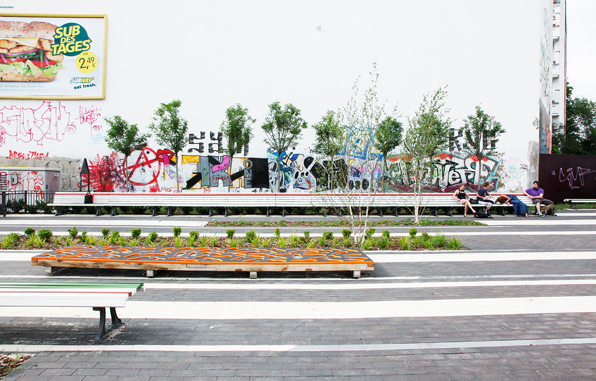 Eine "ruhige, kontemplative Grünfläche" sollte nach dem Wunsch des Bezirks Friedrichshain-Kreuzberg an der Pettenkoferstraße entstehen. Unmittelbar angrenzend wurde damals ein neues Wohnensemble mit teils altersgerechten Wohnungen errichtet. Der Platz sollte öffentlich zugänglich sein und Raum für die Terrasse eines Cafés bieten.Unser Konzept
