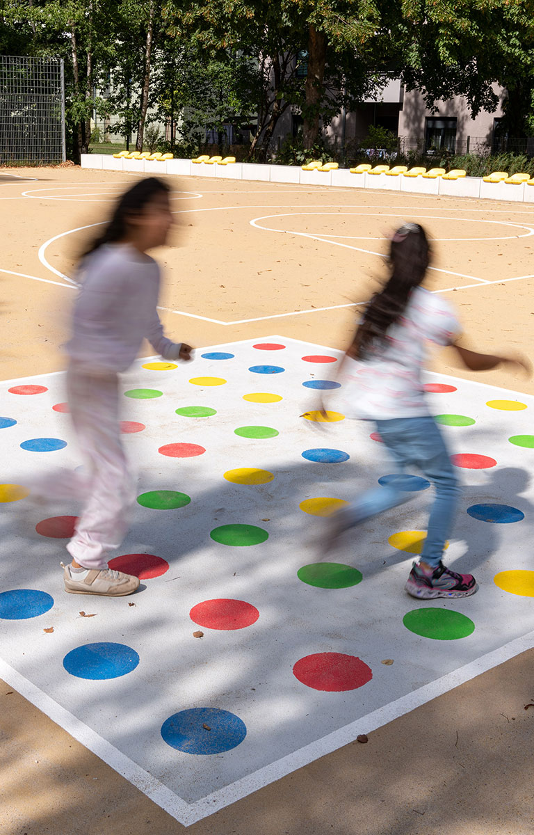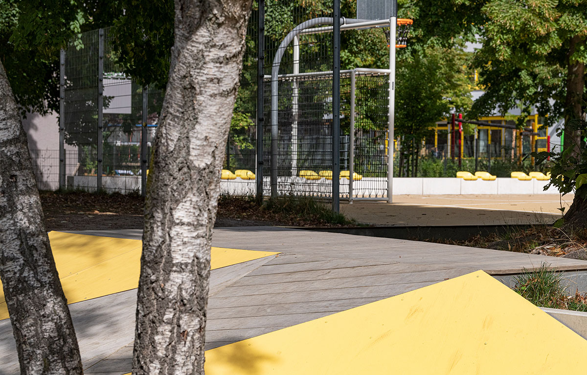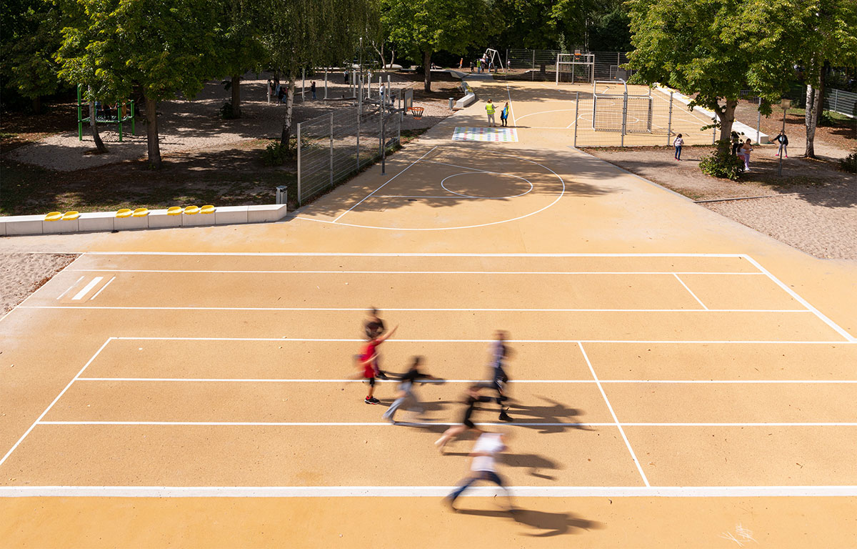 Neugestaltung Schulhof Lauterbach Schule mit Sportflächen, Spielgeräten und Schulgarten.